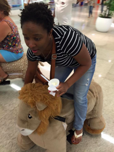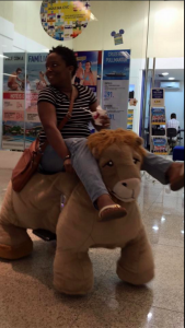 We had another history lesson with Professor Fred and our first Samba lesson with Maristela. After dinner we went out with Justin since tomorrow is his last day with CCS. He told us he had culture shock when he arrived 3 months ago and he's going to have culture shock again when he returns home. He's been sad and we wanted to cheer him up. I convinced everyone to ride the motorized animals in the mall.
