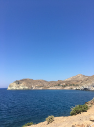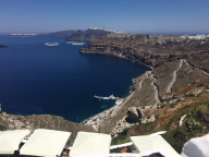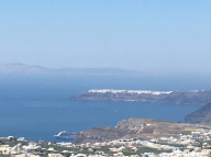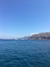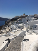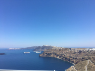 Today we made the trip from Crete to Santorini via bus from the resort to a ferry that took us to the island. I've seen photos of Santorini and heard stories from friends that have visited, but it's truly one of those places you have to experience for yourself to appreciate. In Santorini, the water and sky are mirror images of one another from certain views, and I even caught a clear glimpse of the moon midday.